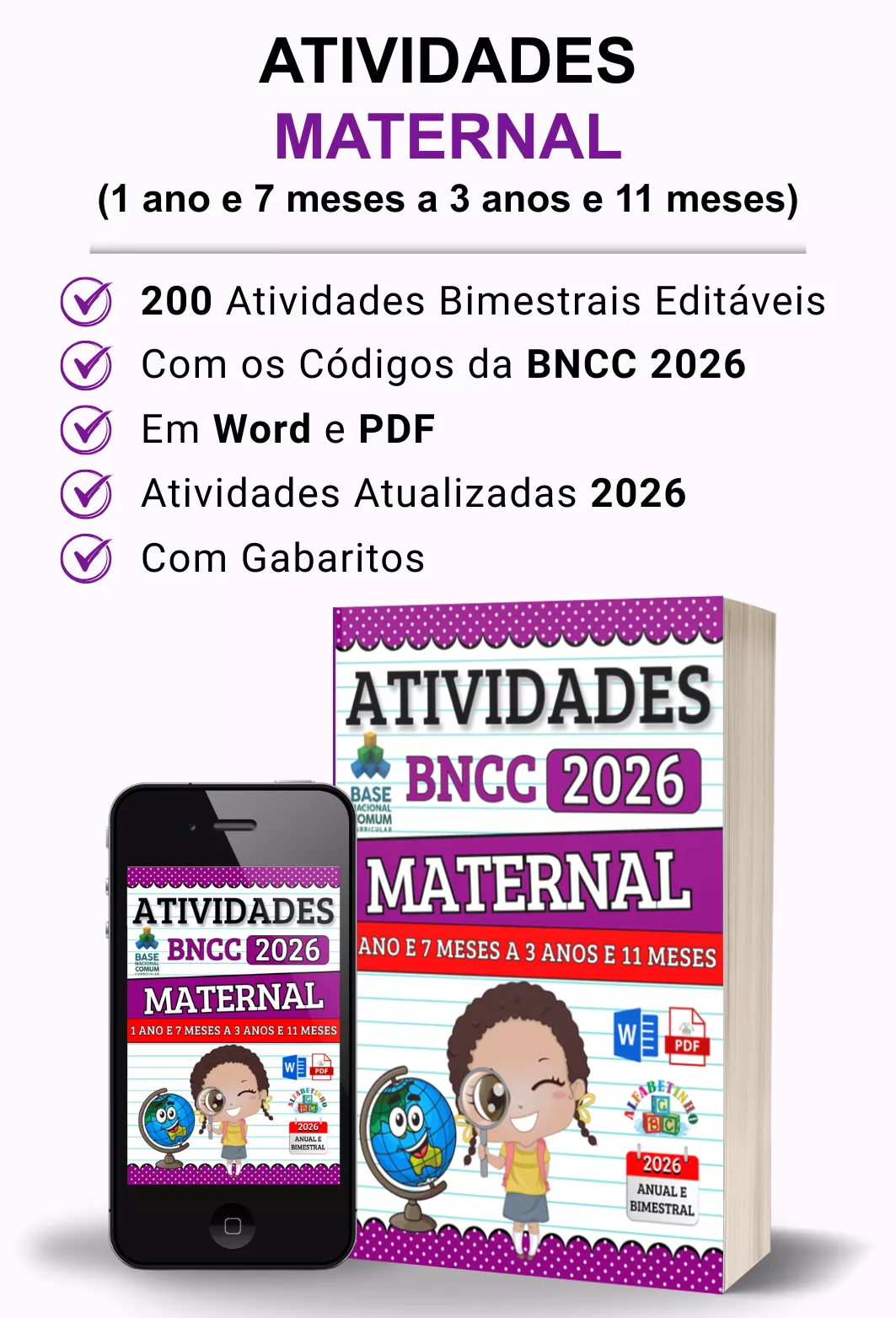 Essa é apenas uma pequena amostra das atividades. O material completo contém mais de 500 páginas, 100% atualizadas para o seu 2026 e editáveis em Word, com todos os códigos da BNCC!