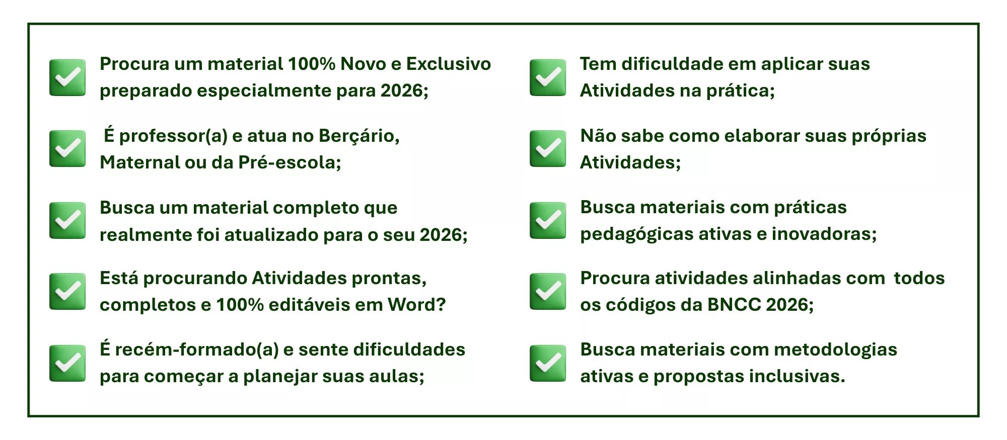 ✓ É professor(a) e atua no Berçário, Maternal ou da Pré-escola;