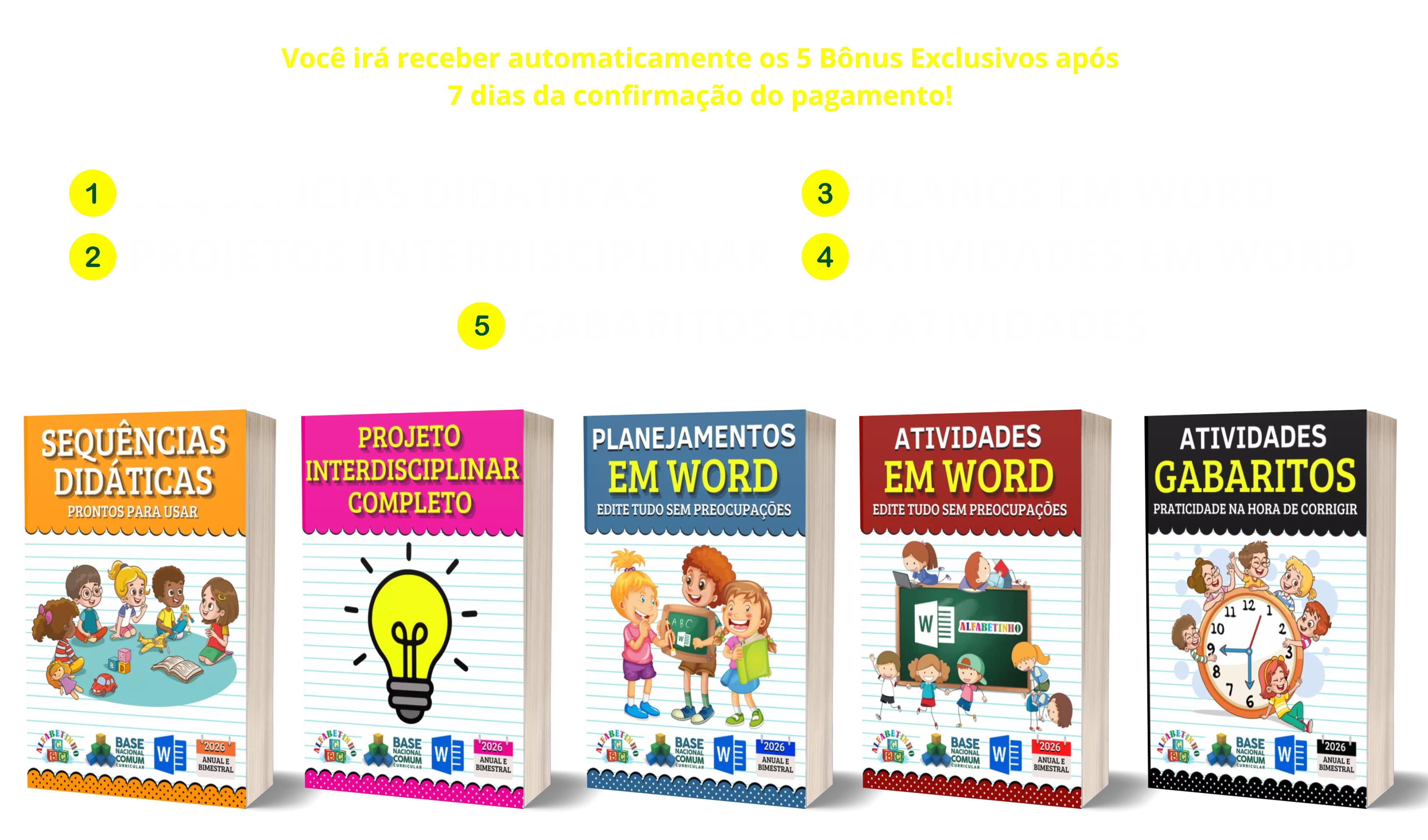 Você irá receber automaticamente os 5 Bônus Exclusivos após 7 dias da confirmação do pagamento!