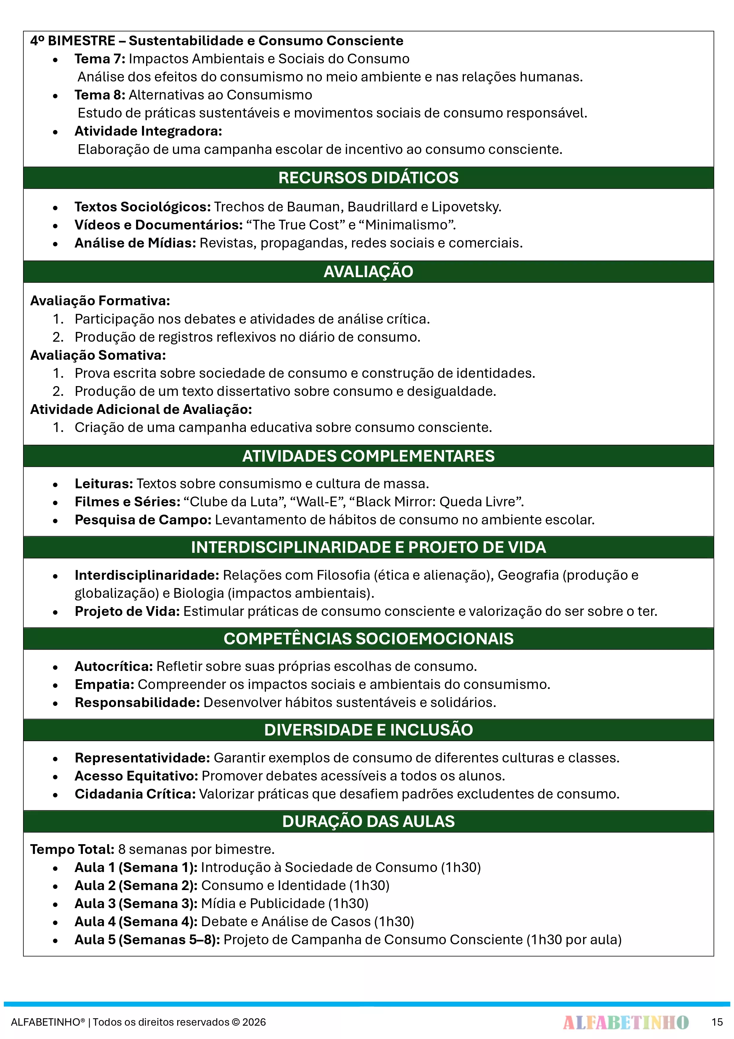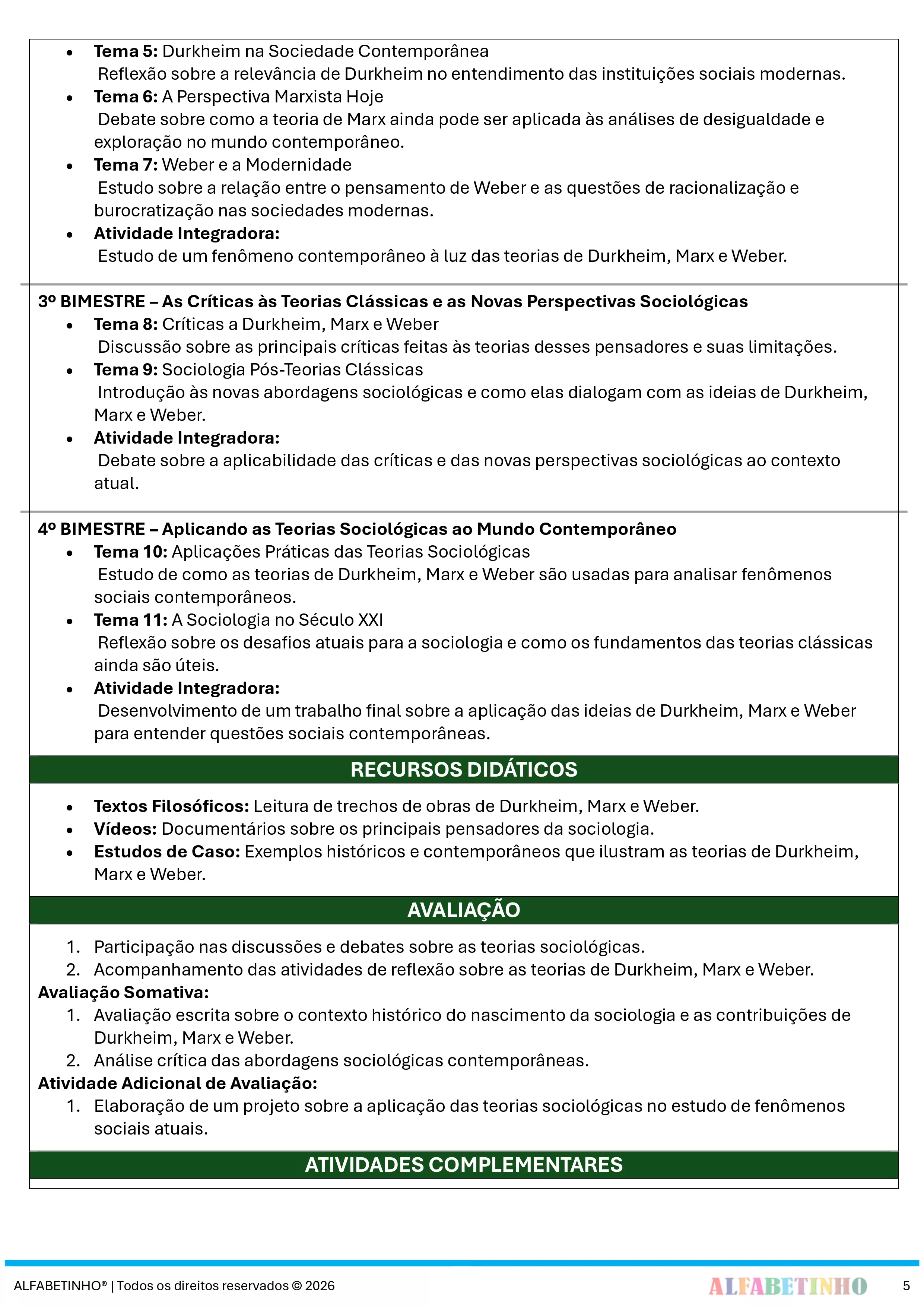 ✓ Planos Anuais e Bimestrais, prontos e editáveis em Word;