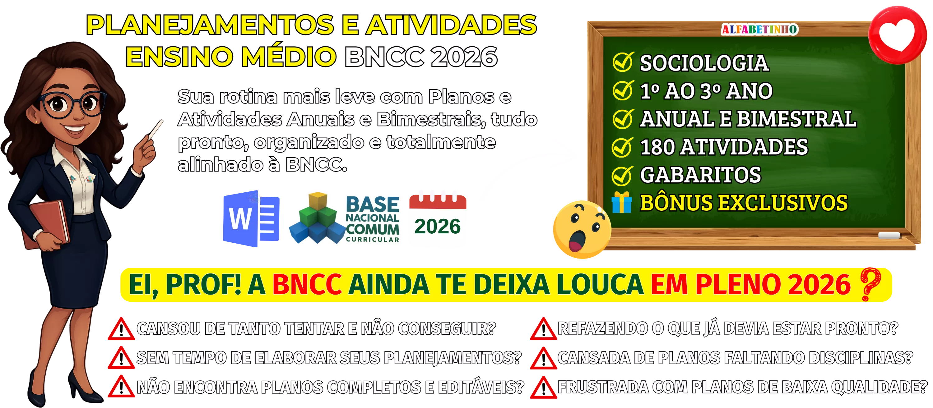 BNCC 2026, totalmente editáveis no Word e adaptáveis à sua realidade escolar. Praticidade, qualidade e inspiração para professores que amam ensinar!