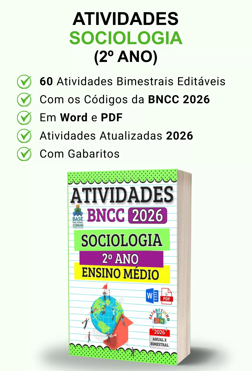 ✓ Atividades com gabaritos e alinhadas à BNCC 2026;