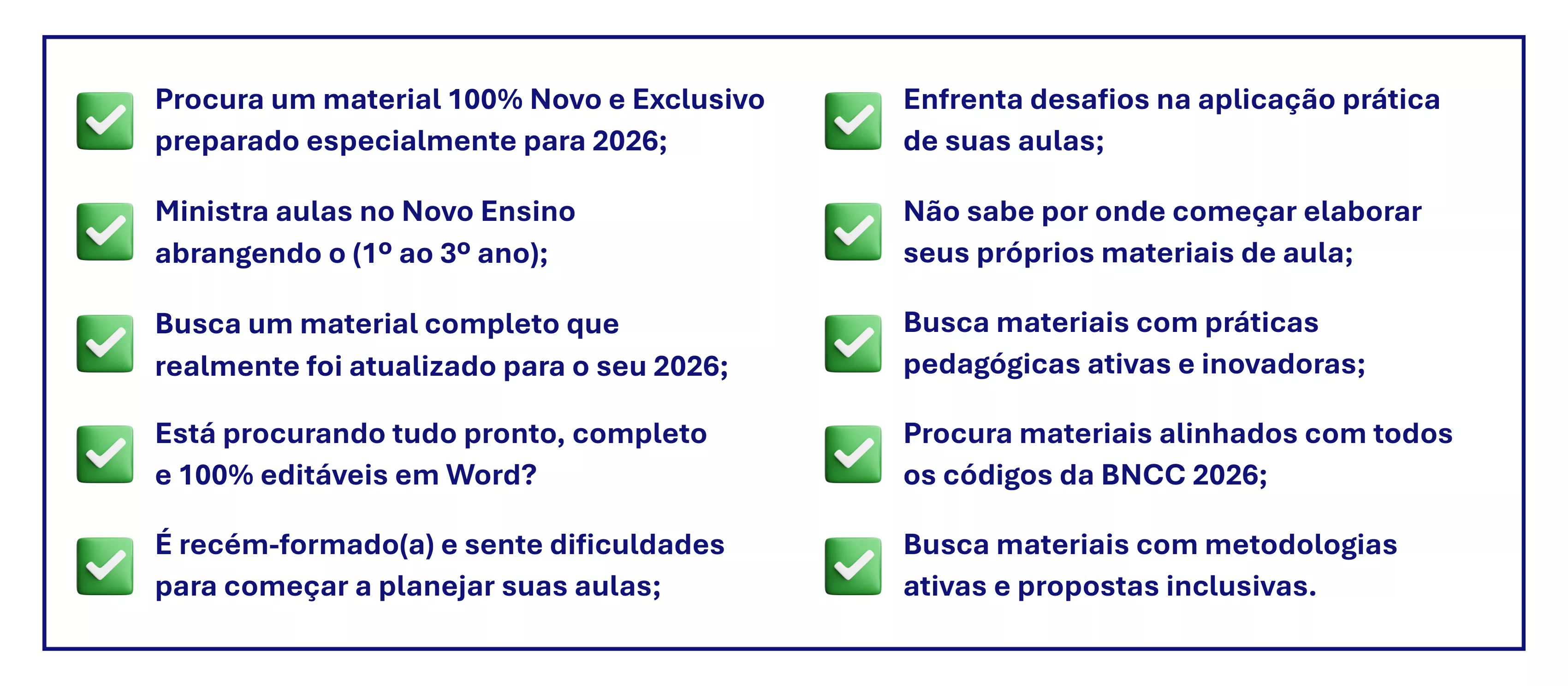 ✓ Procura um material 100% Novo, preparado para o seu 2026;