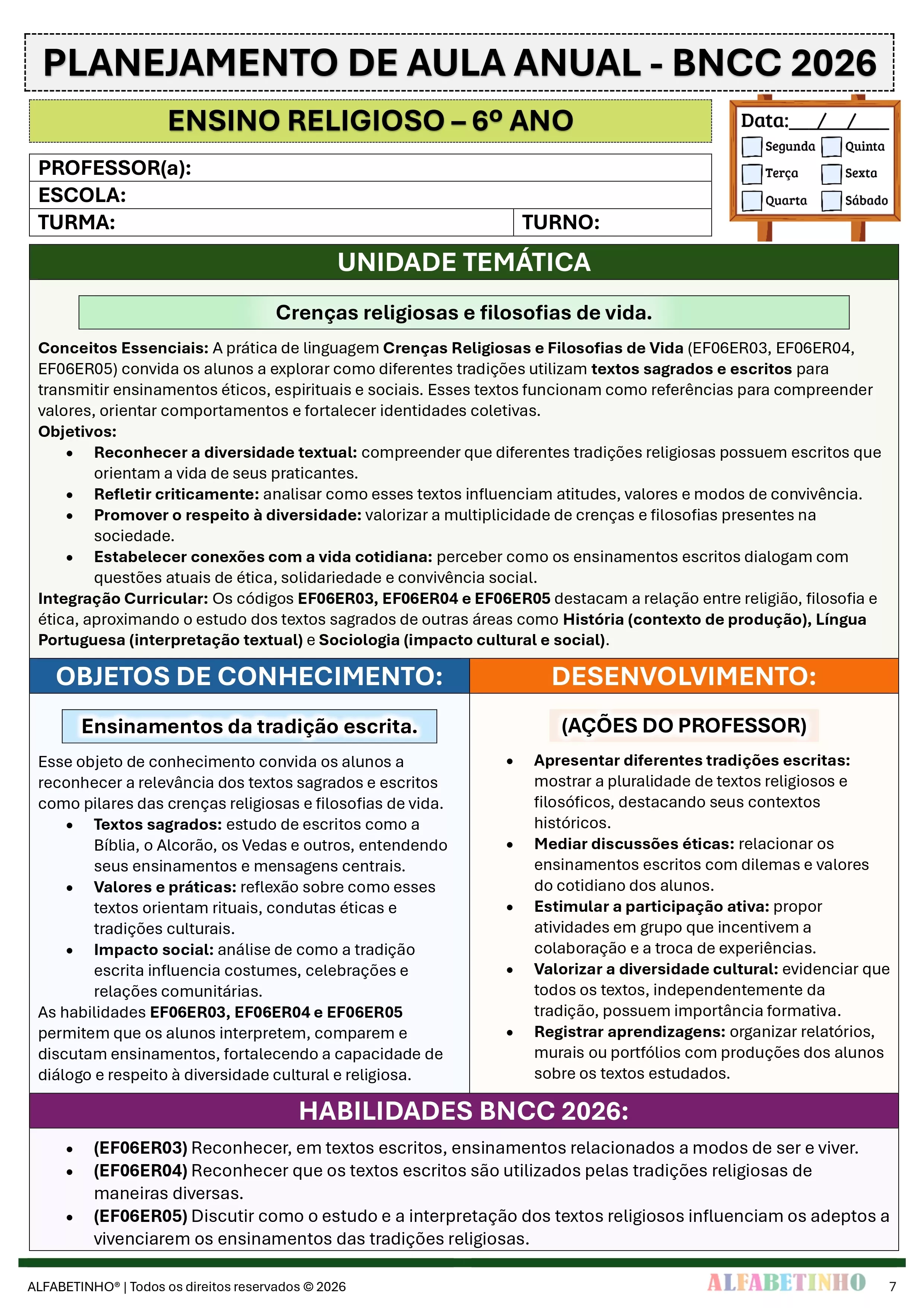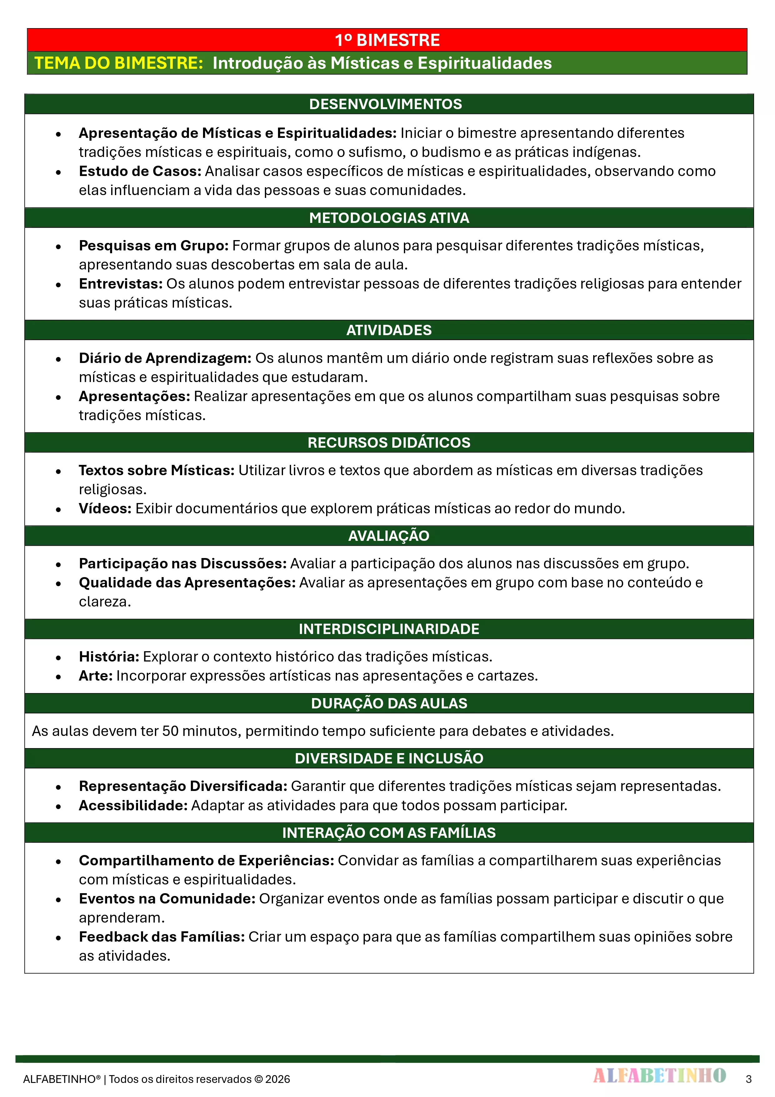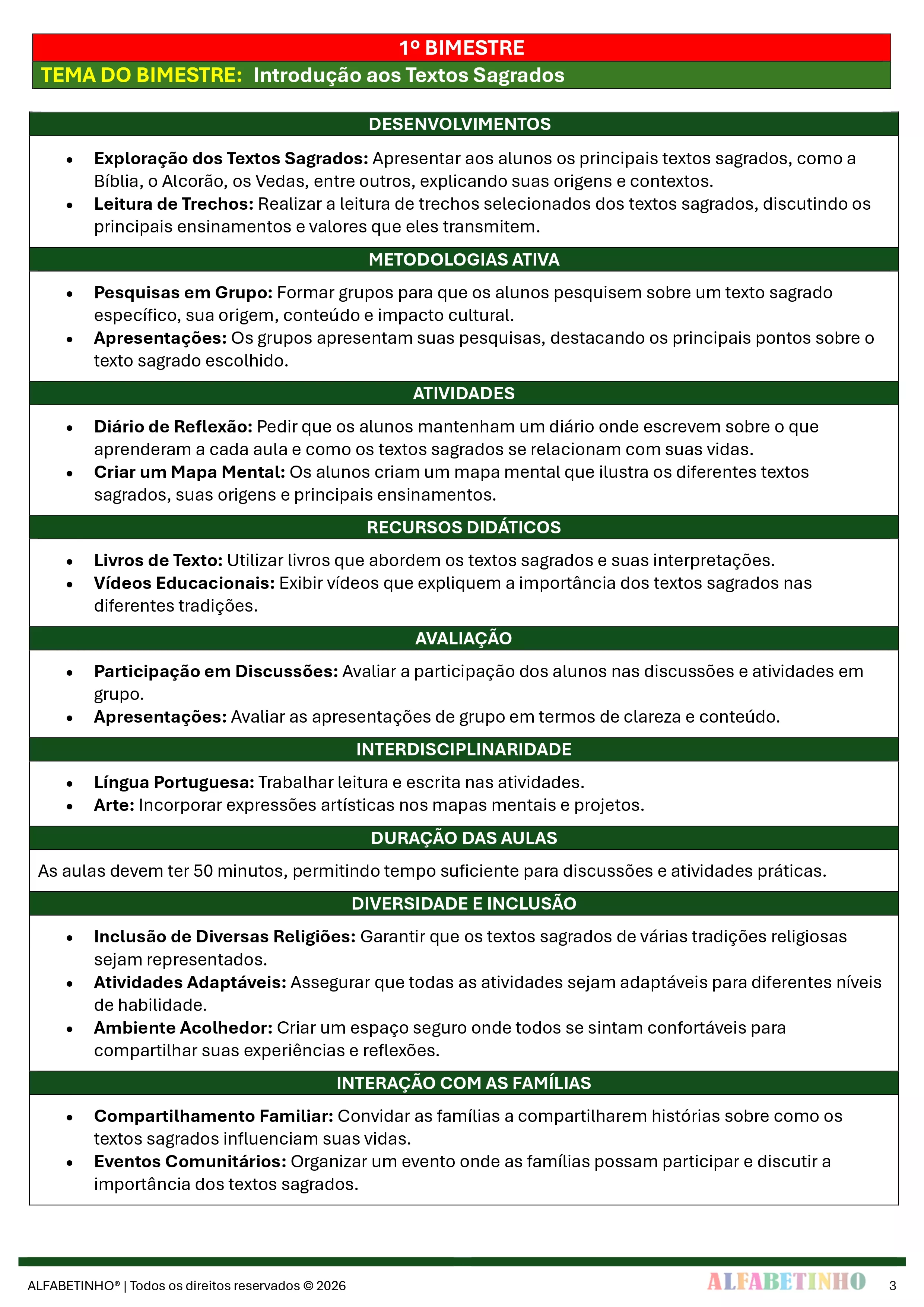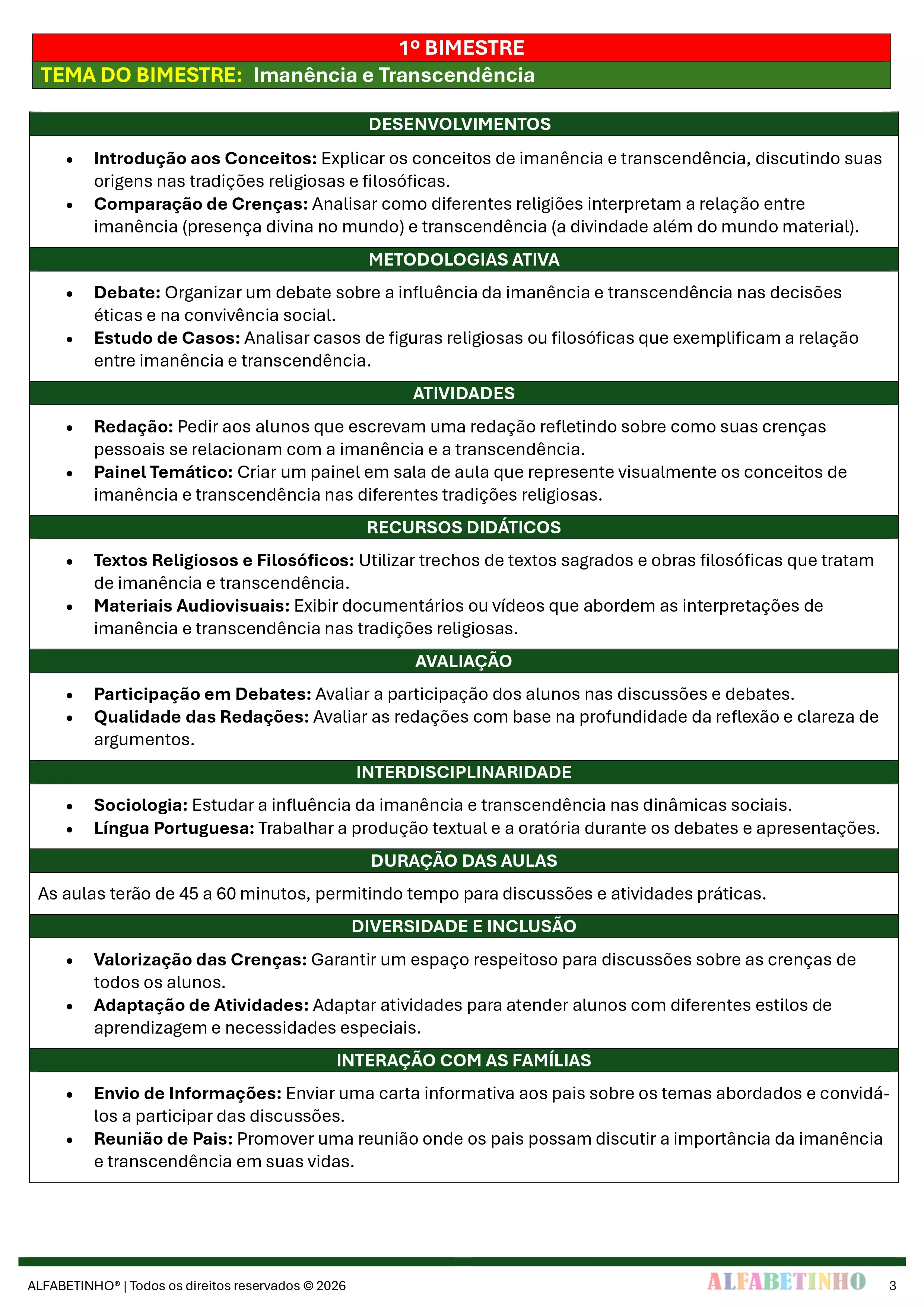 ✓ Planos Anuais e Bimestrais, prontos e editáveis em Word;