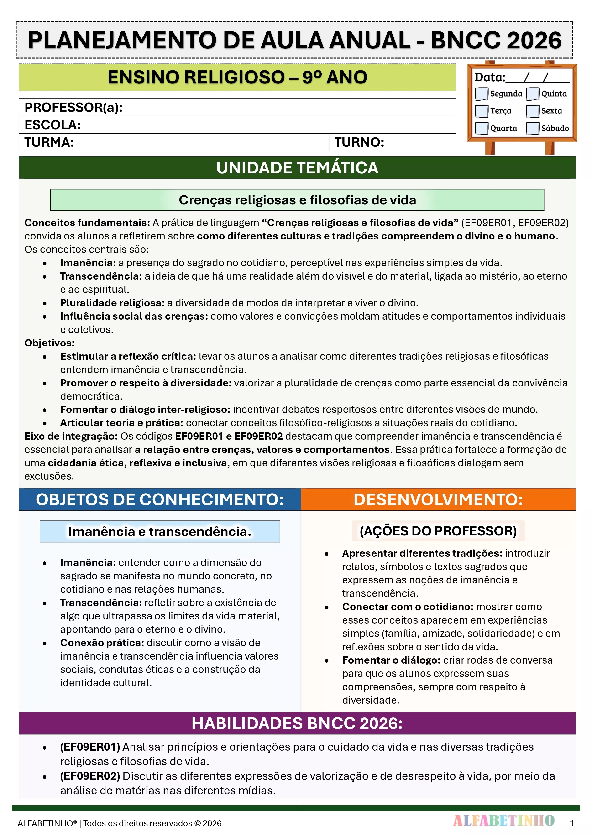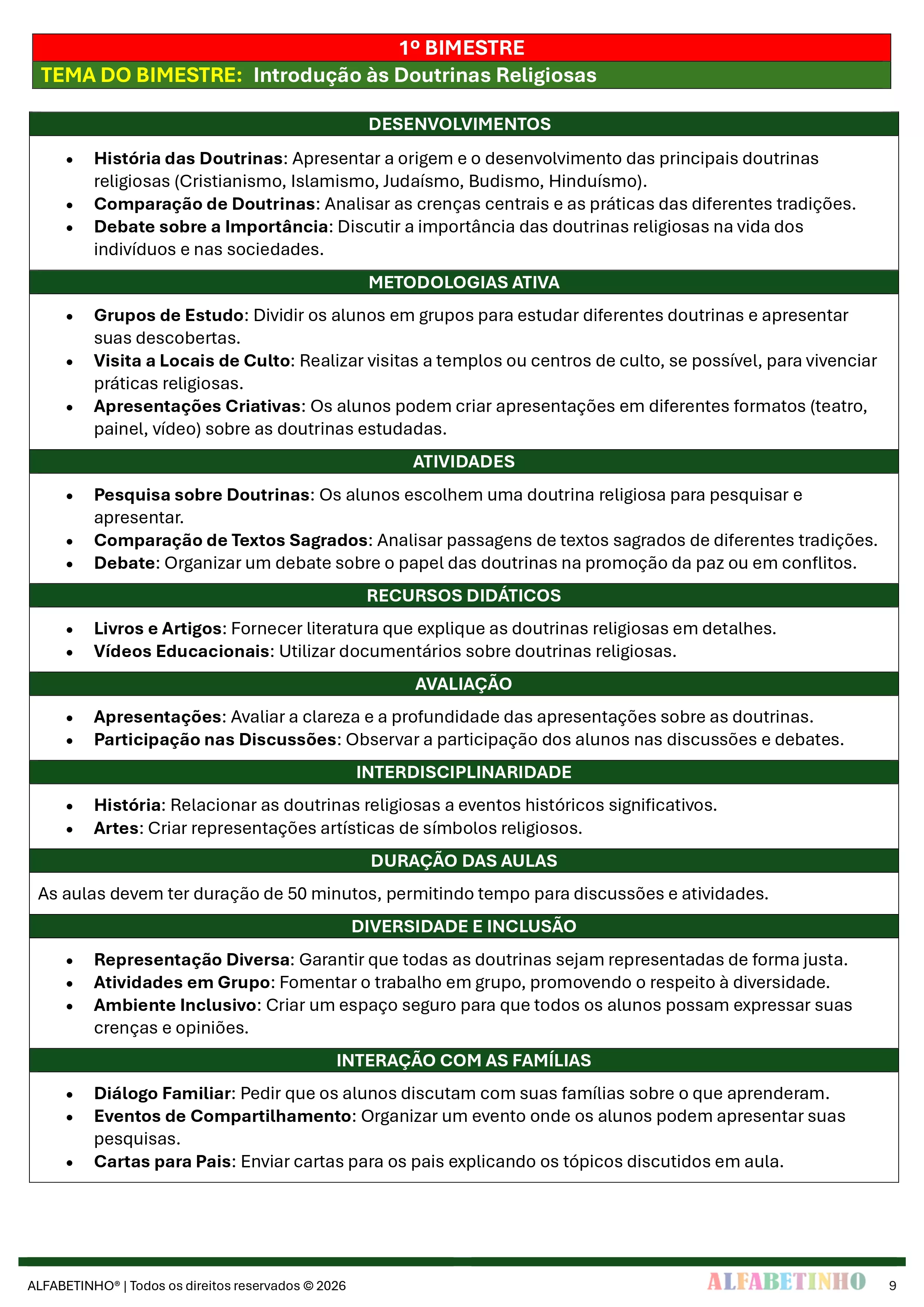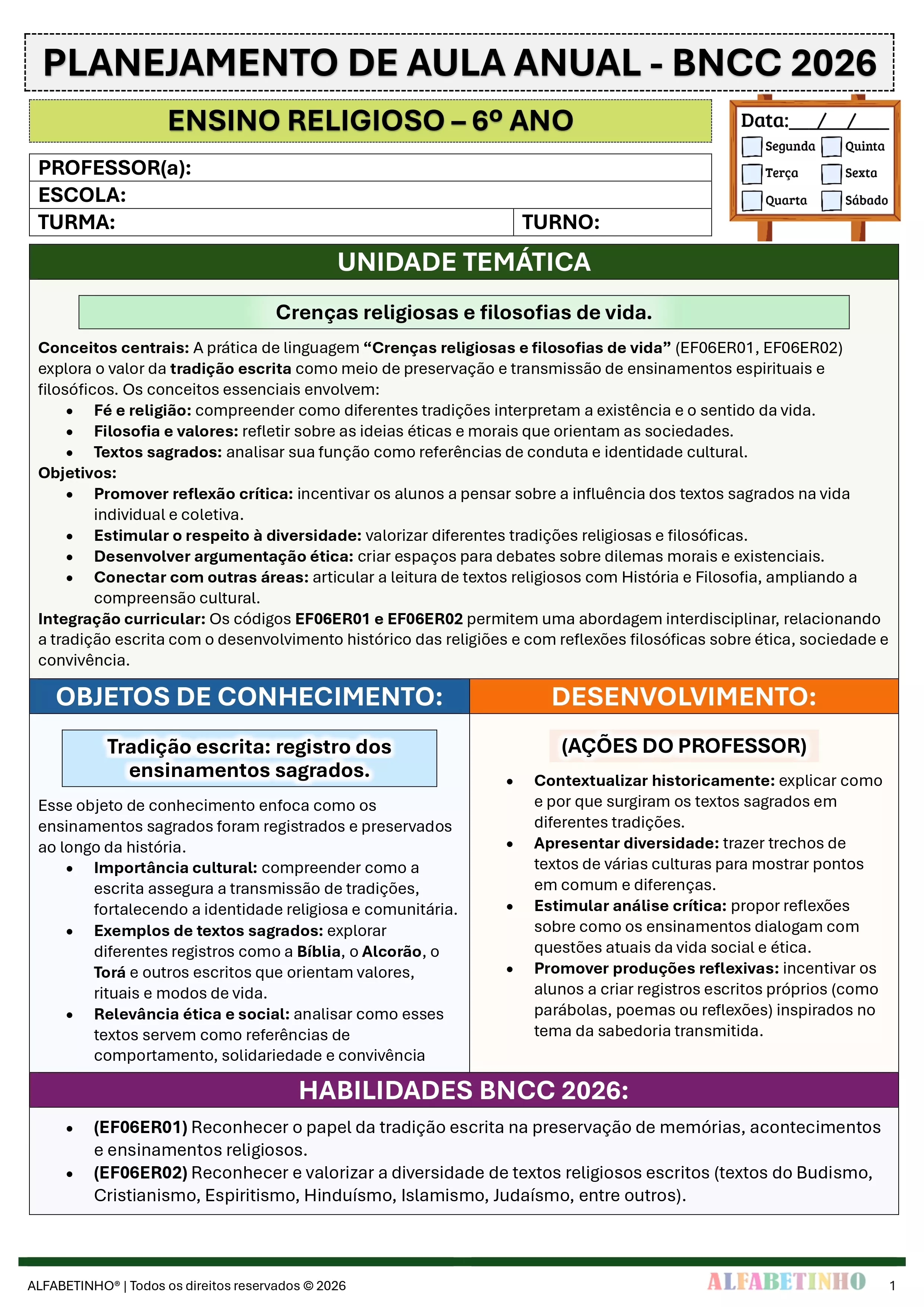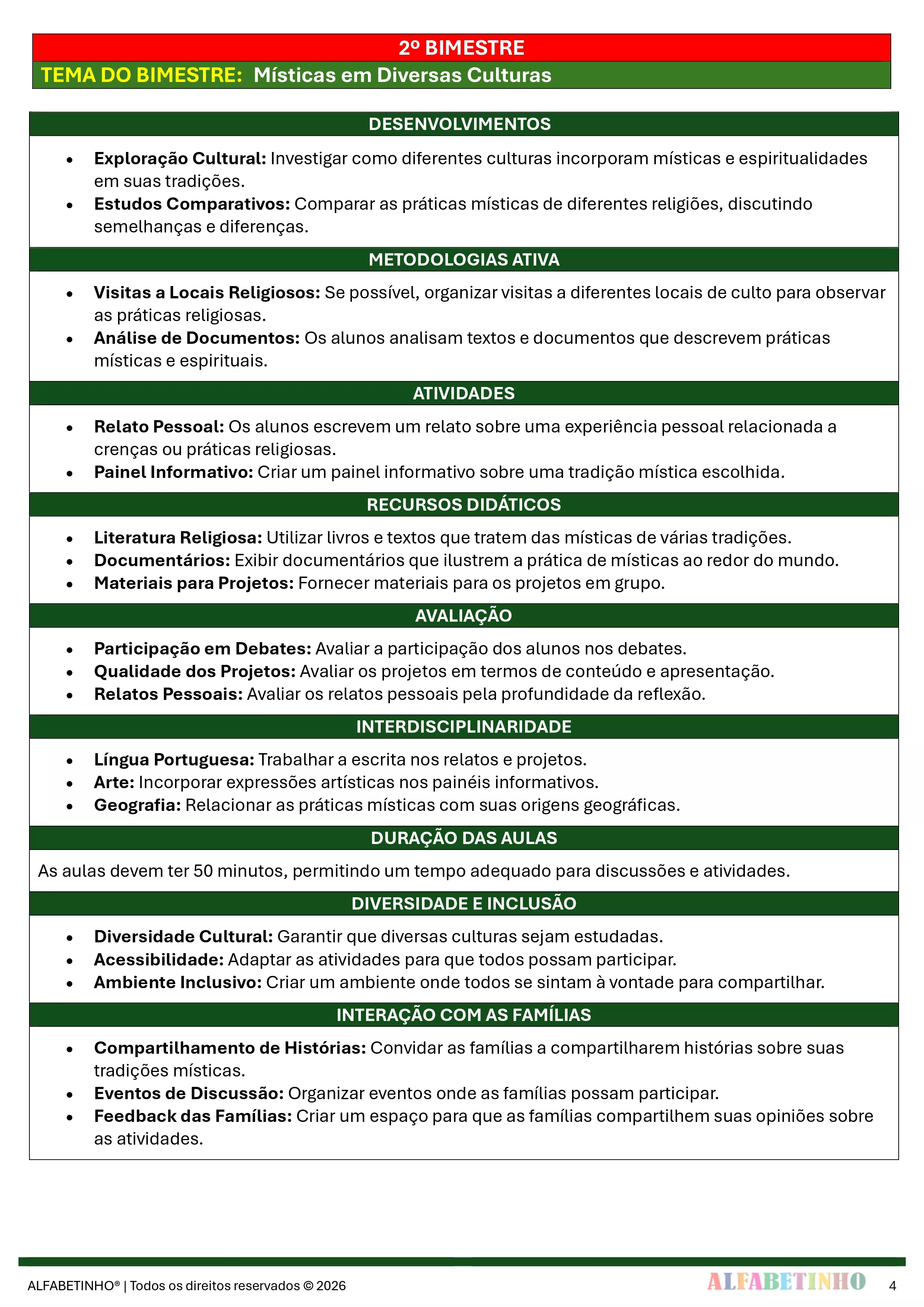 ✓ Planos Anuais e Bimestrais, prontos e editáveis em Word;