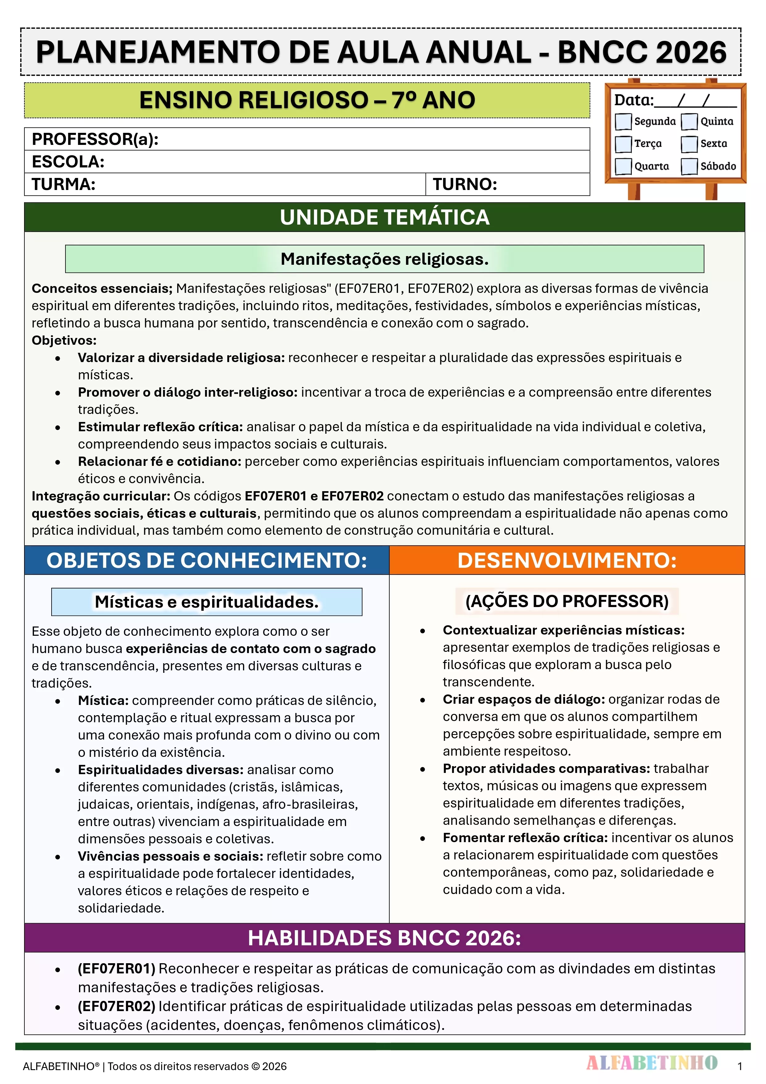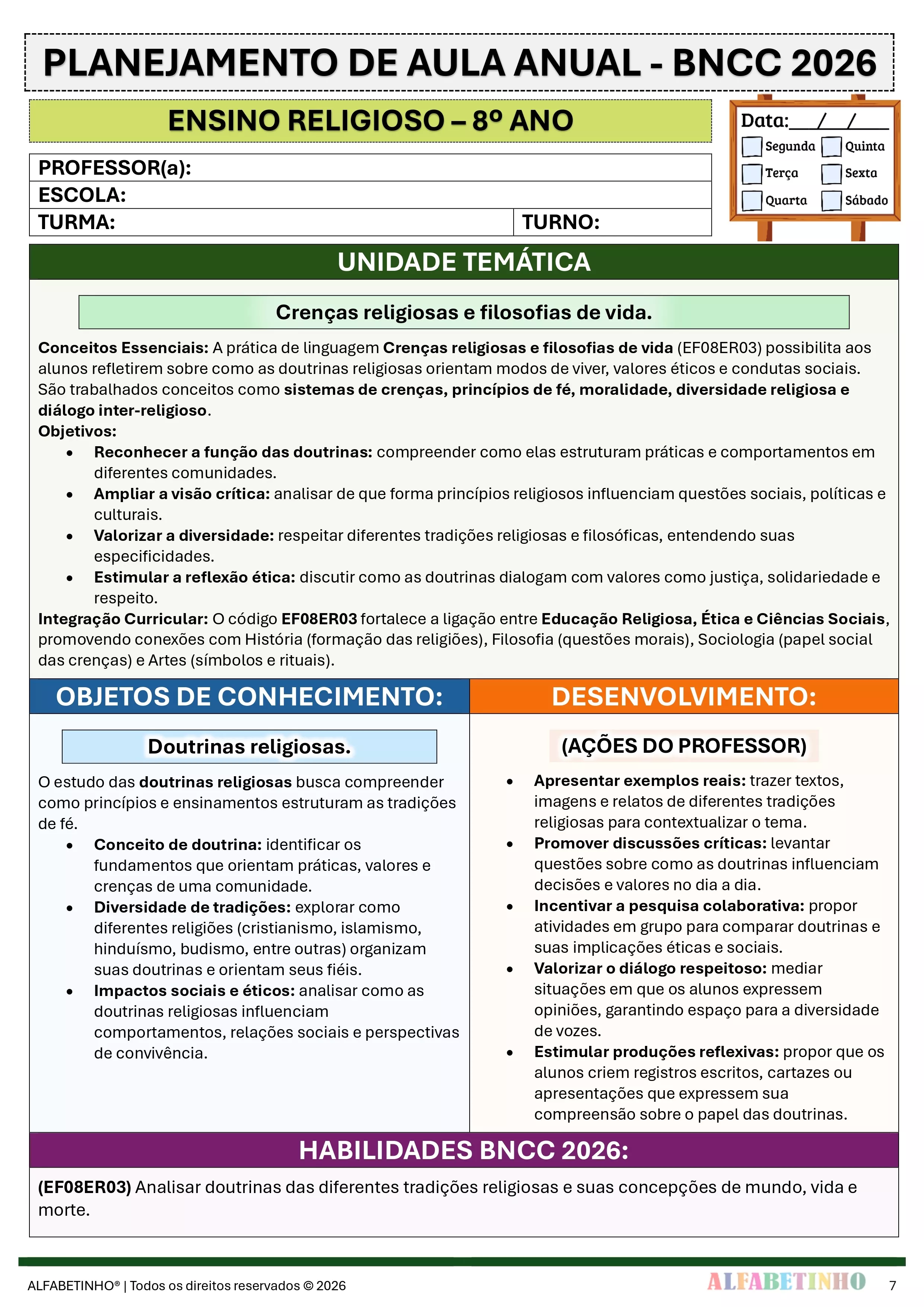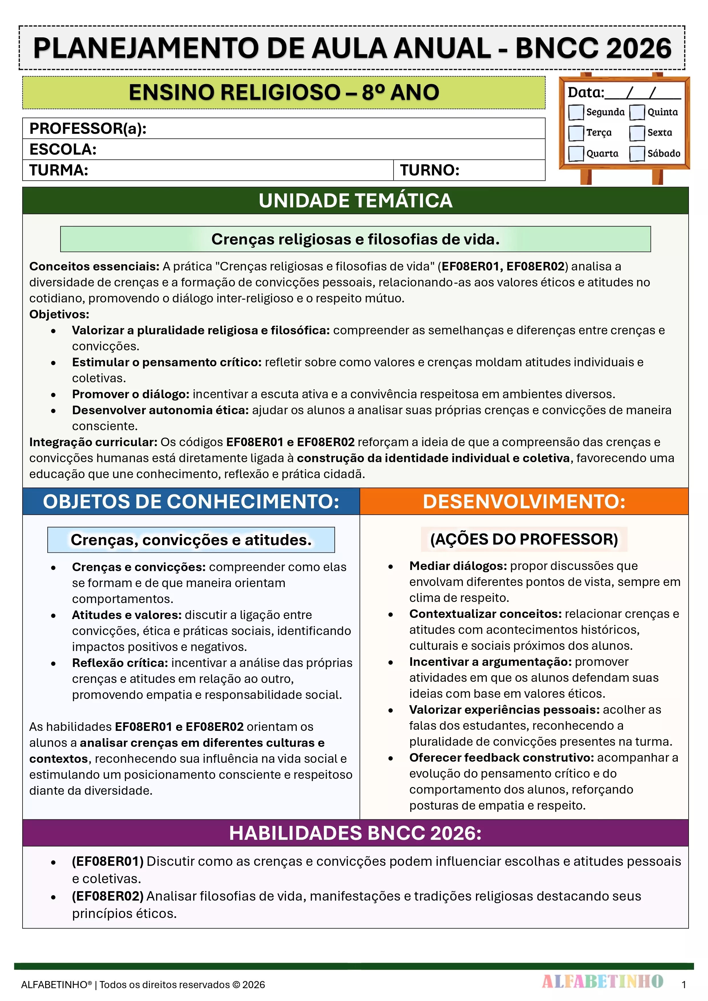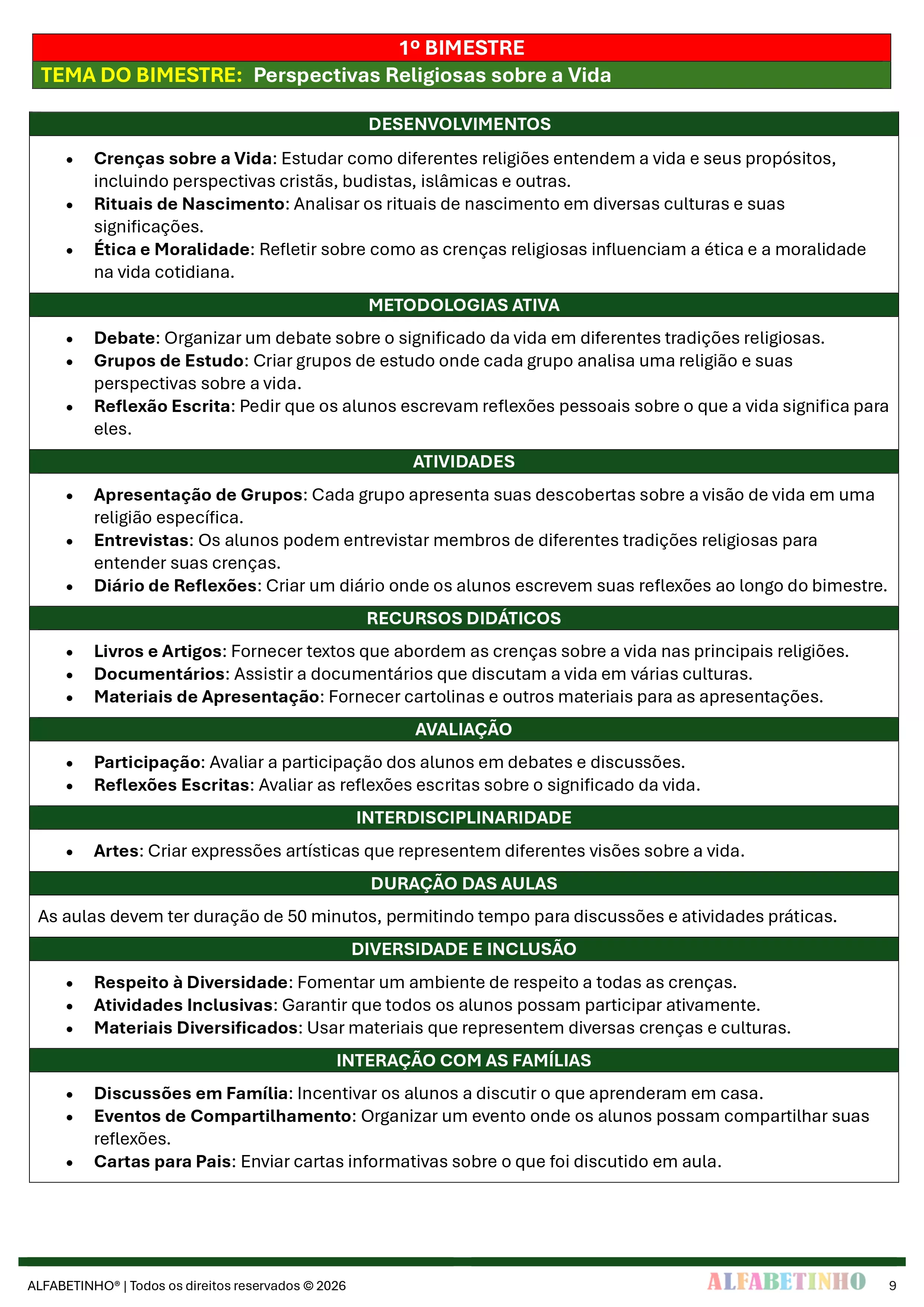 ✓ Planos Anuais e Bimestrais, prontos e editáveis em Word;