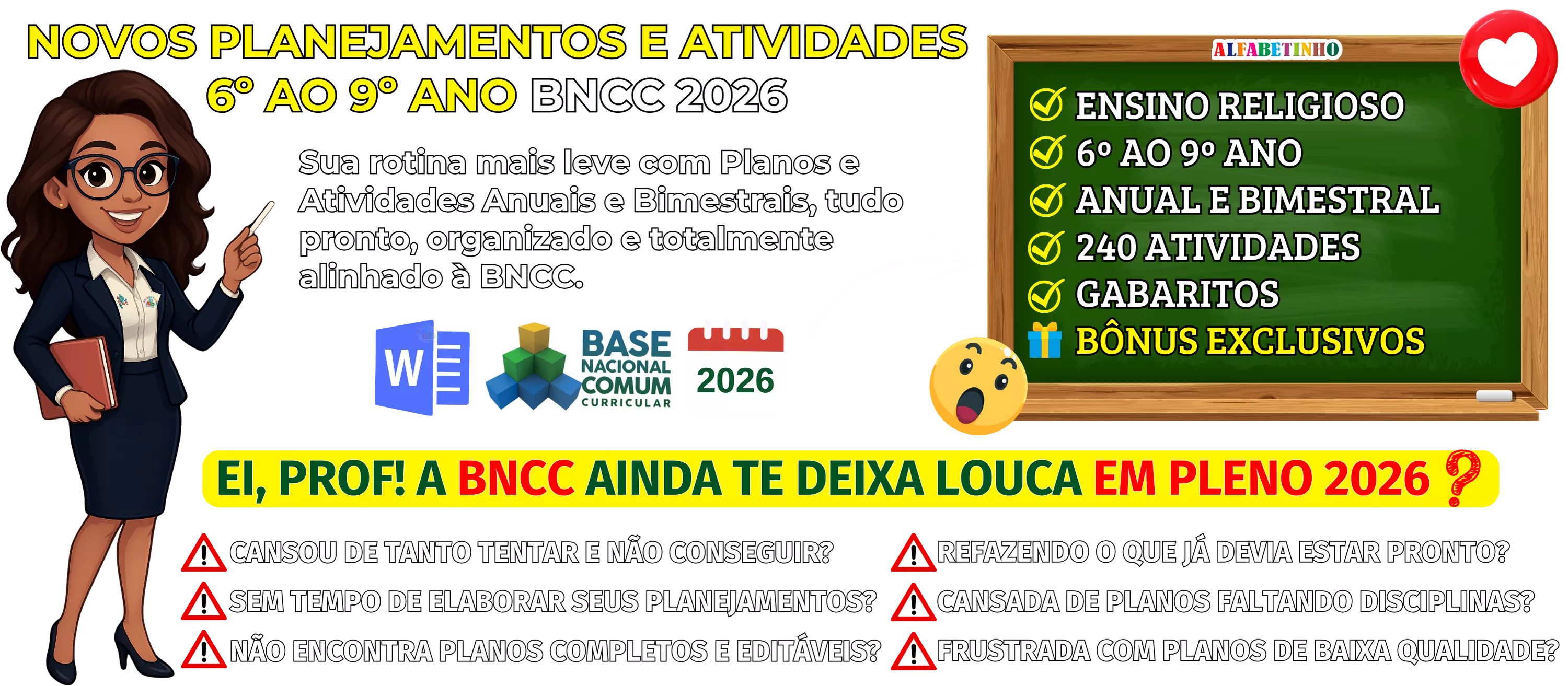 BNCC 2026, totalmente editáveis no Word e adaptáveis à sua realidade escolar. Praticidade, qualidade e inspiração para professores que amam ensinar!